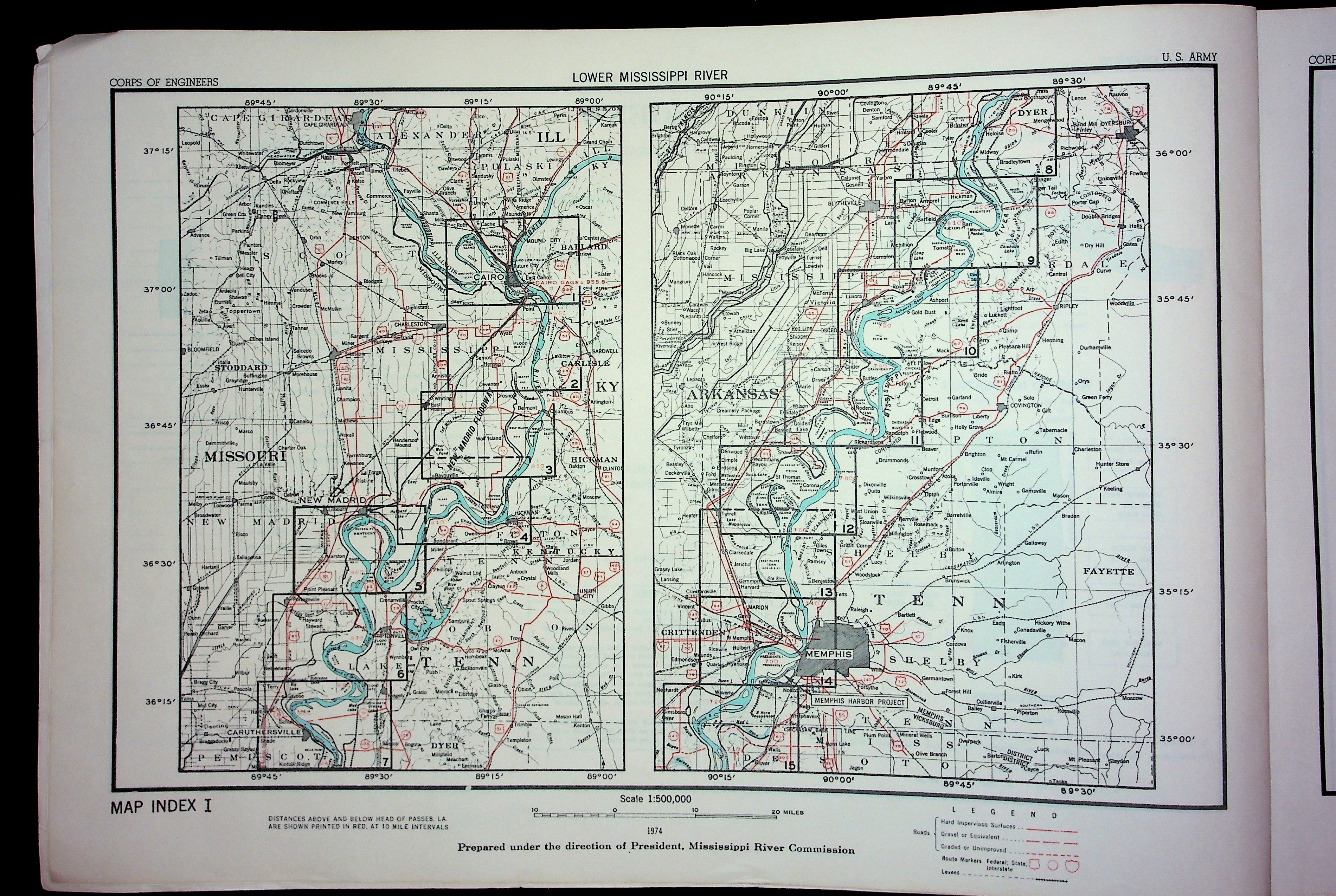 Army Corp of Engineers Waterway Maps of Lower Mississippi River 1974