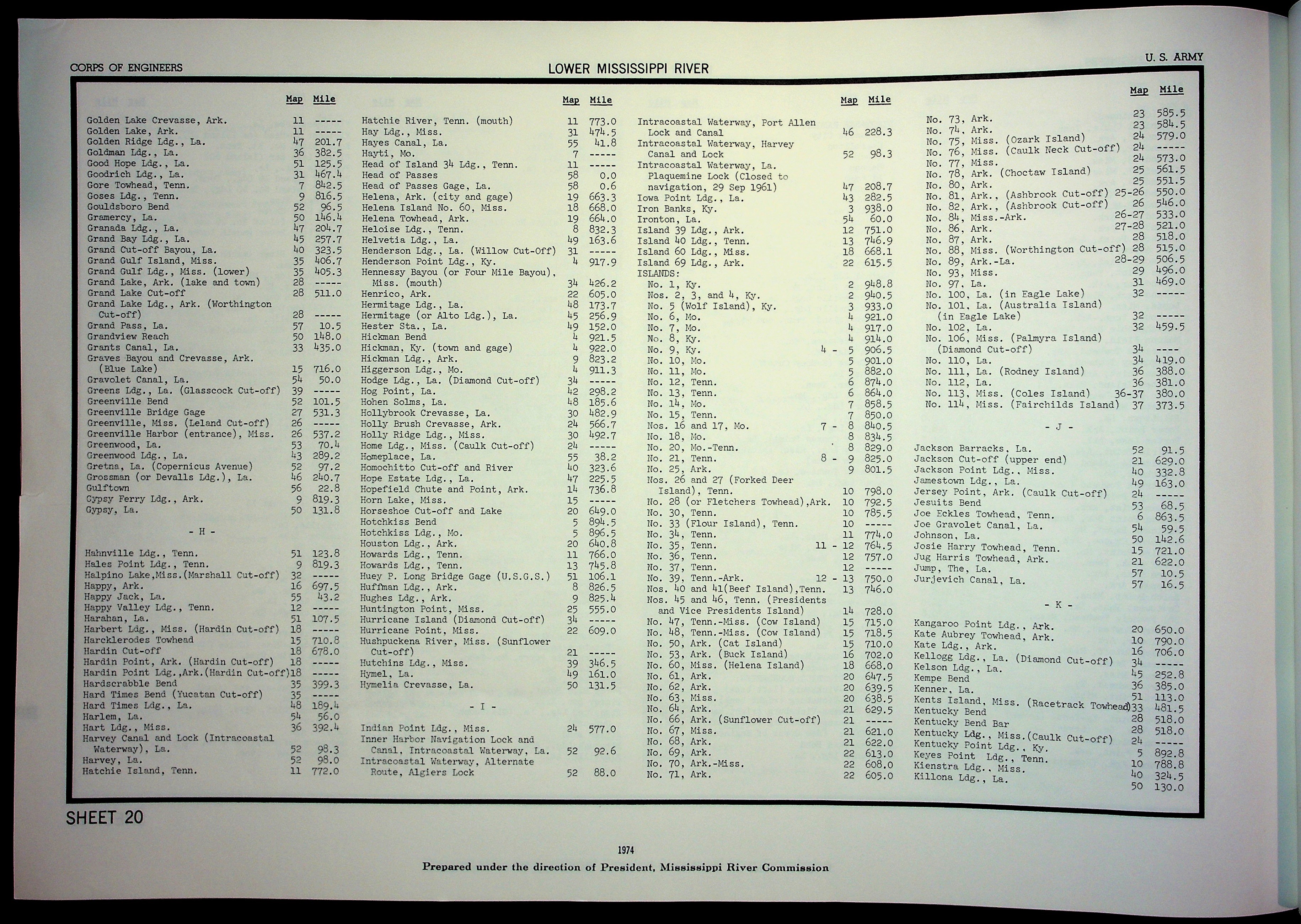 Army Corp of Engineers Waterway Maps of Lower Mississippi River 1974