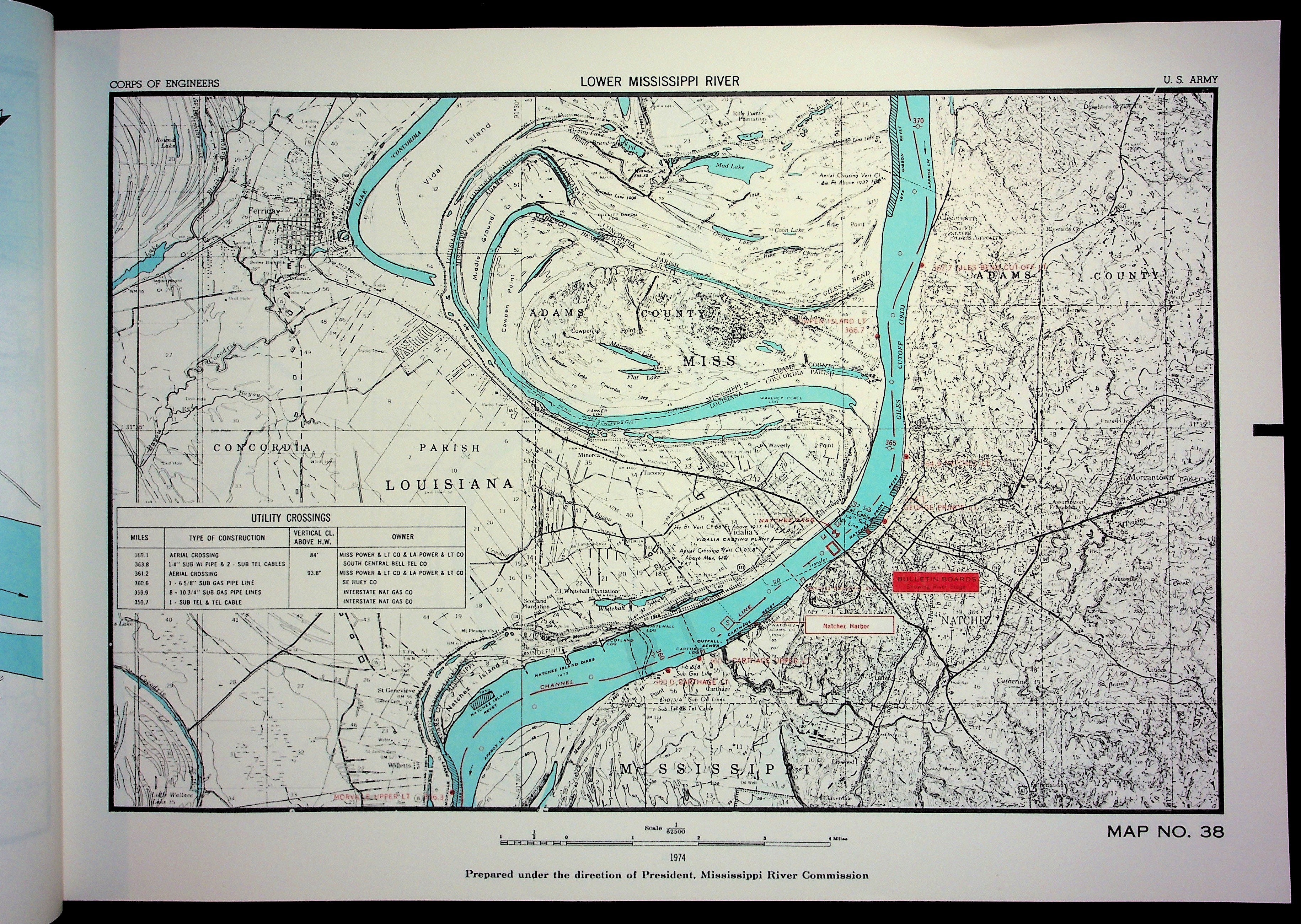 Army Corp of Engineers Waterway Maps of Lower Mississippi River 1974