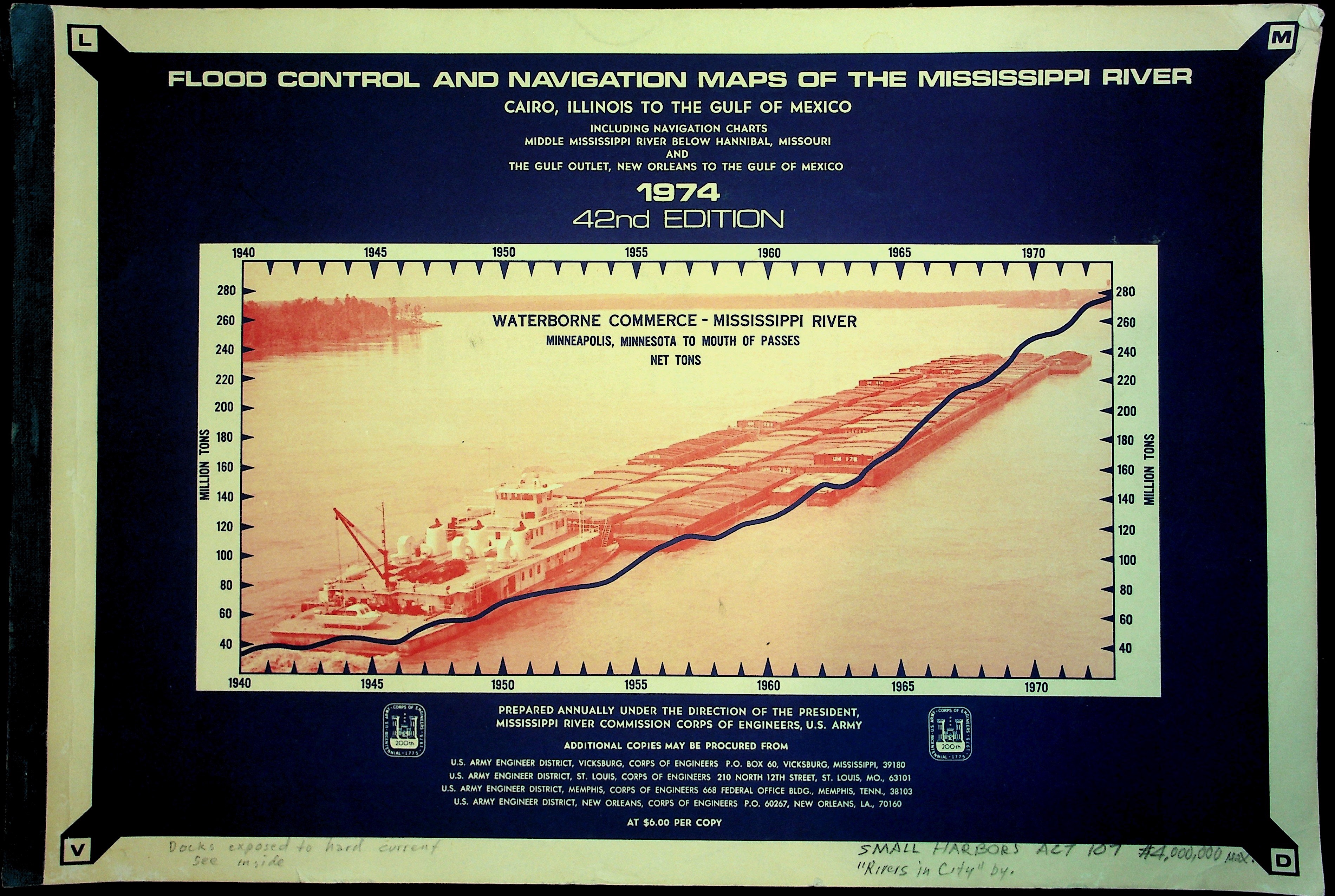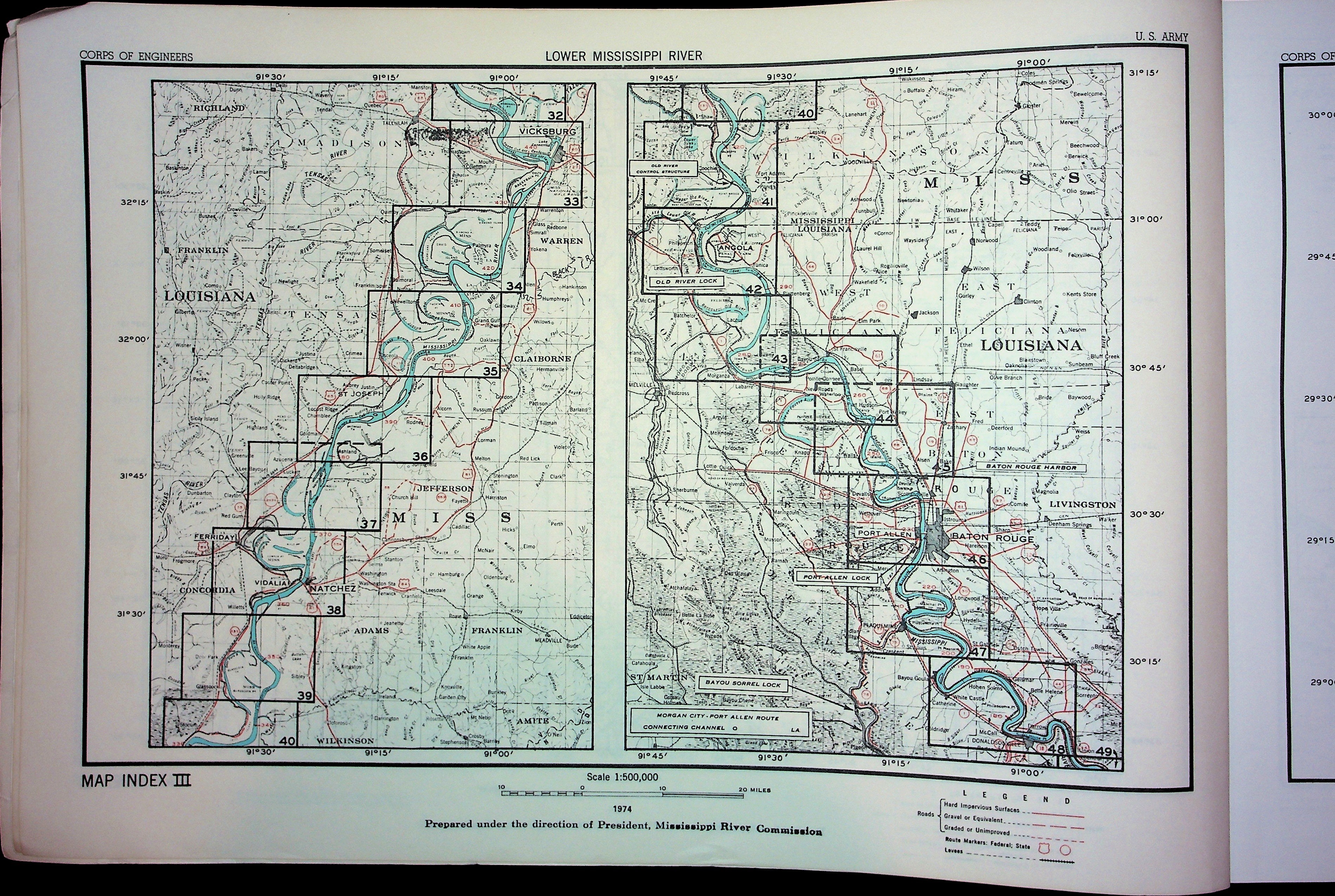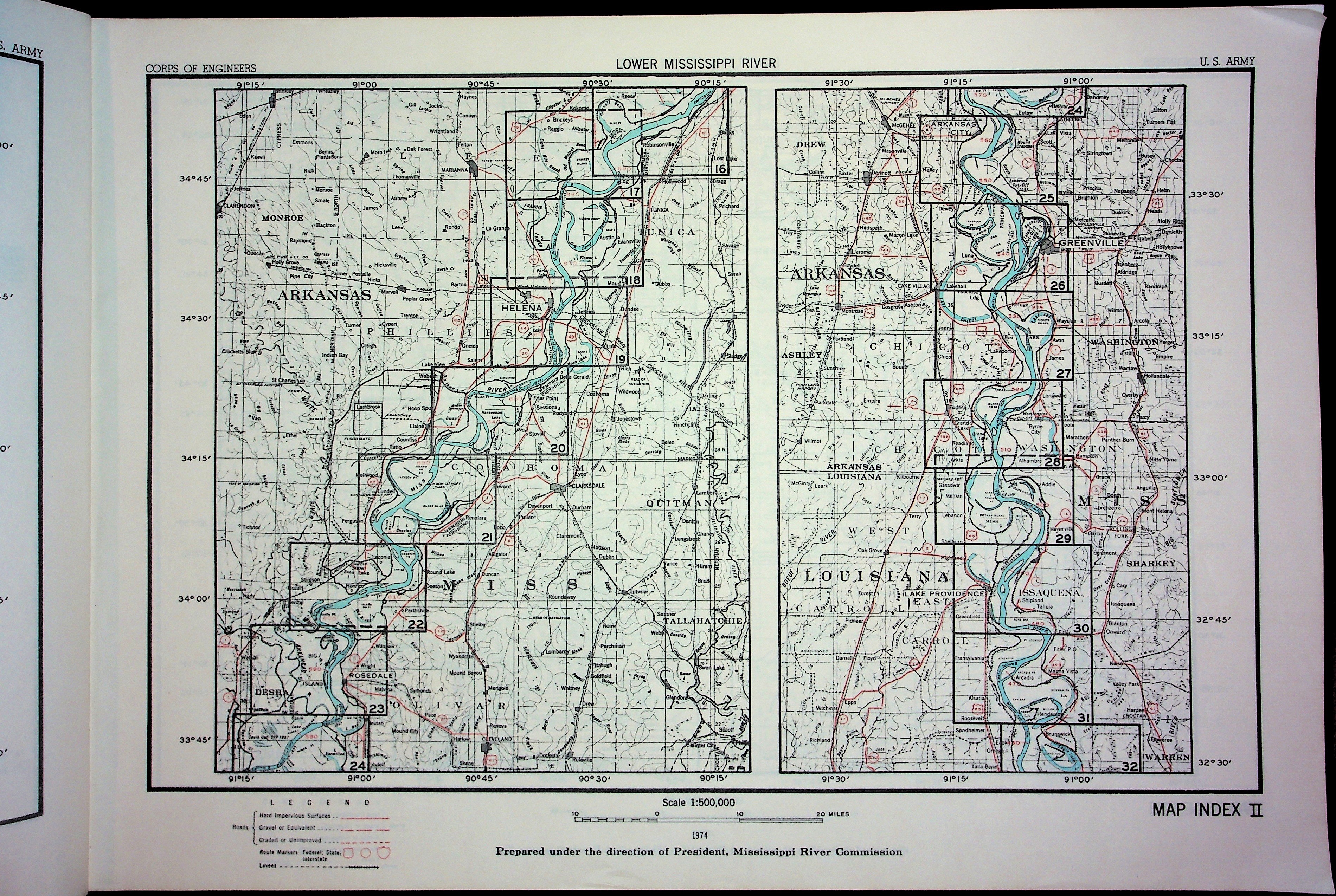 Army Corp of Engineers Waterway Maps of Lower Mississippi River 1974