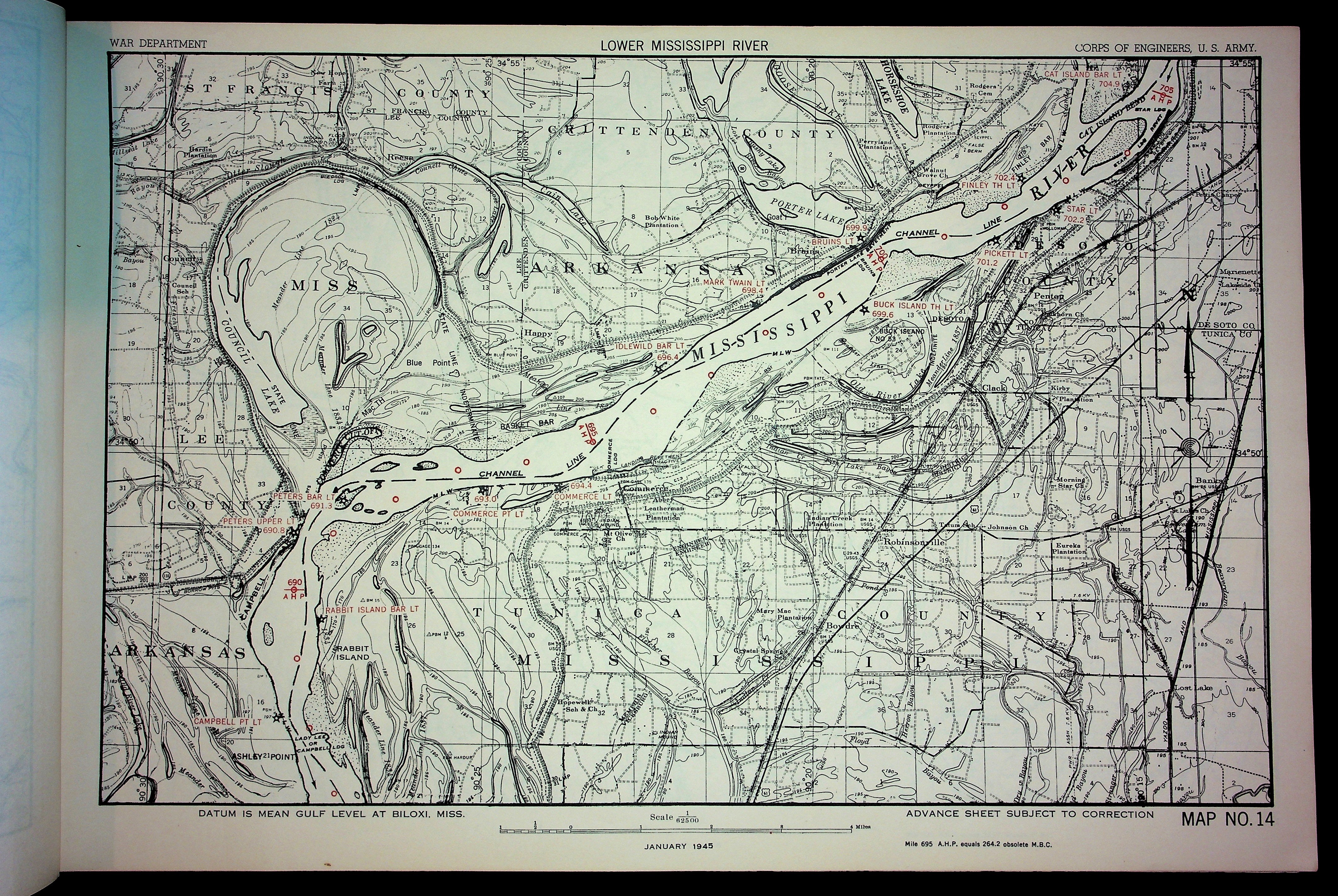 PublicArmy Corp of Engineers Waterway Maps of Lower Mississippi River 1945