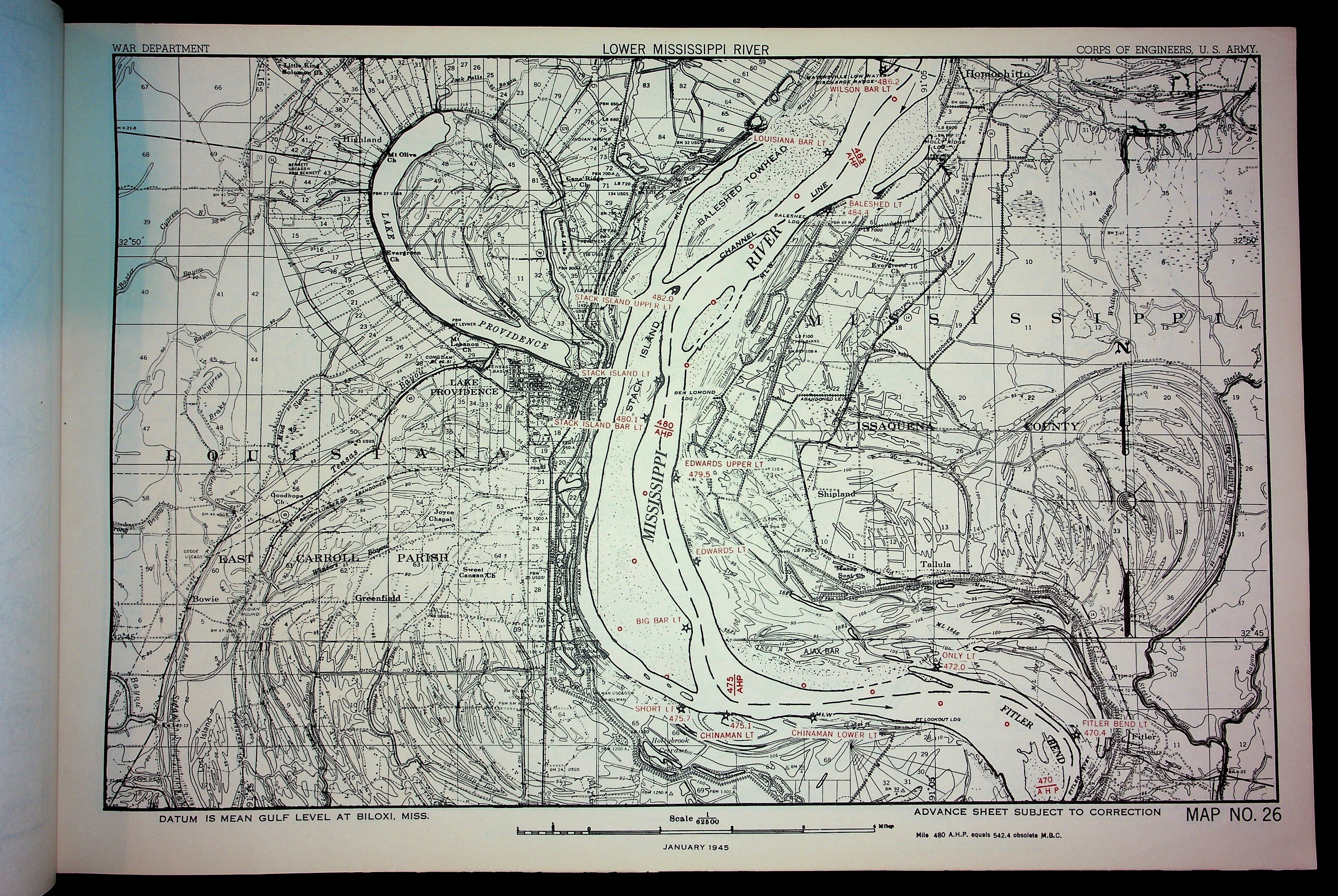 PublicArmy Corp of Engineers Waterway Maps of Lower Mississippi River 1945