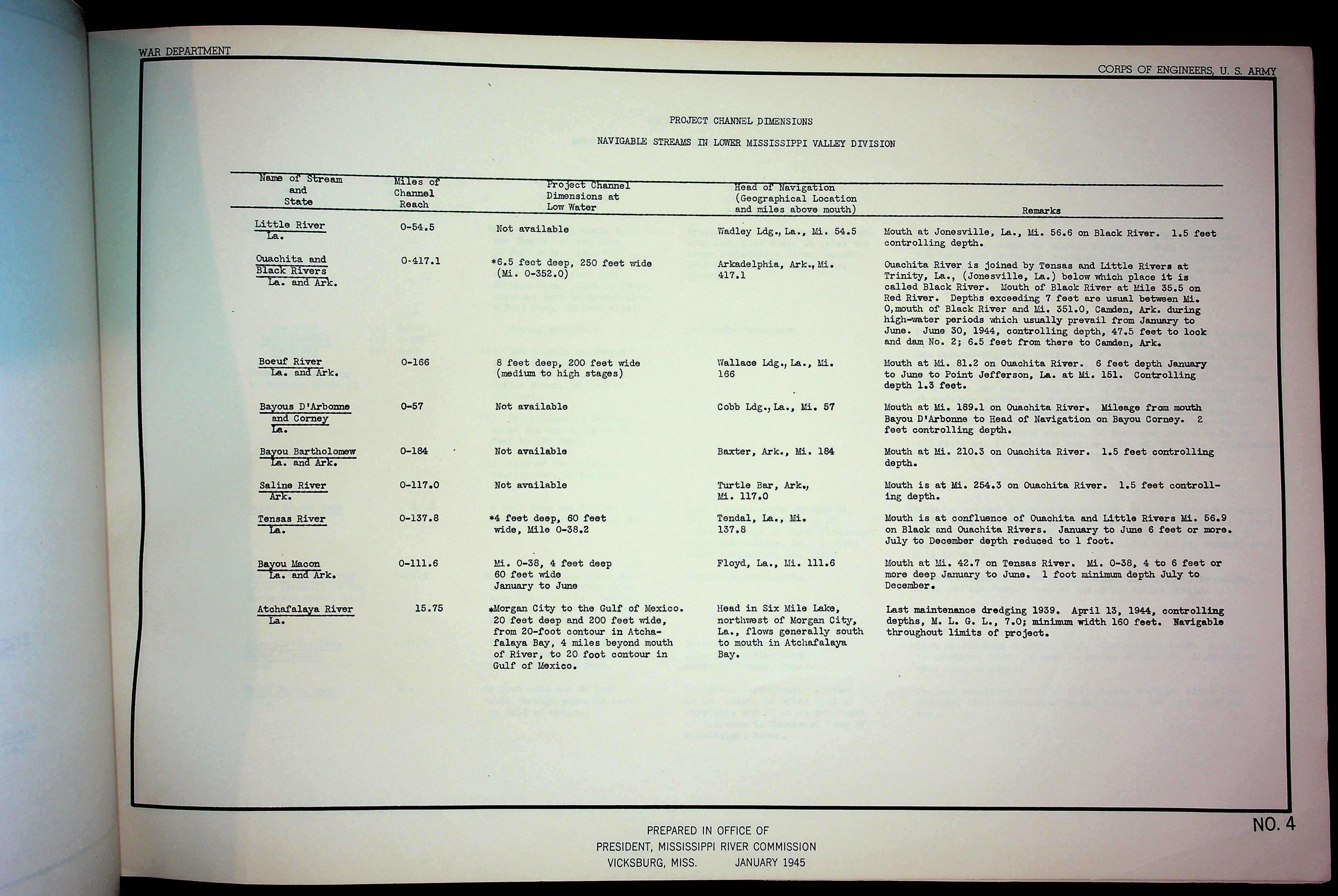 Army Corp of Engineers Waterway Maps of Lower Mississippi River 1945