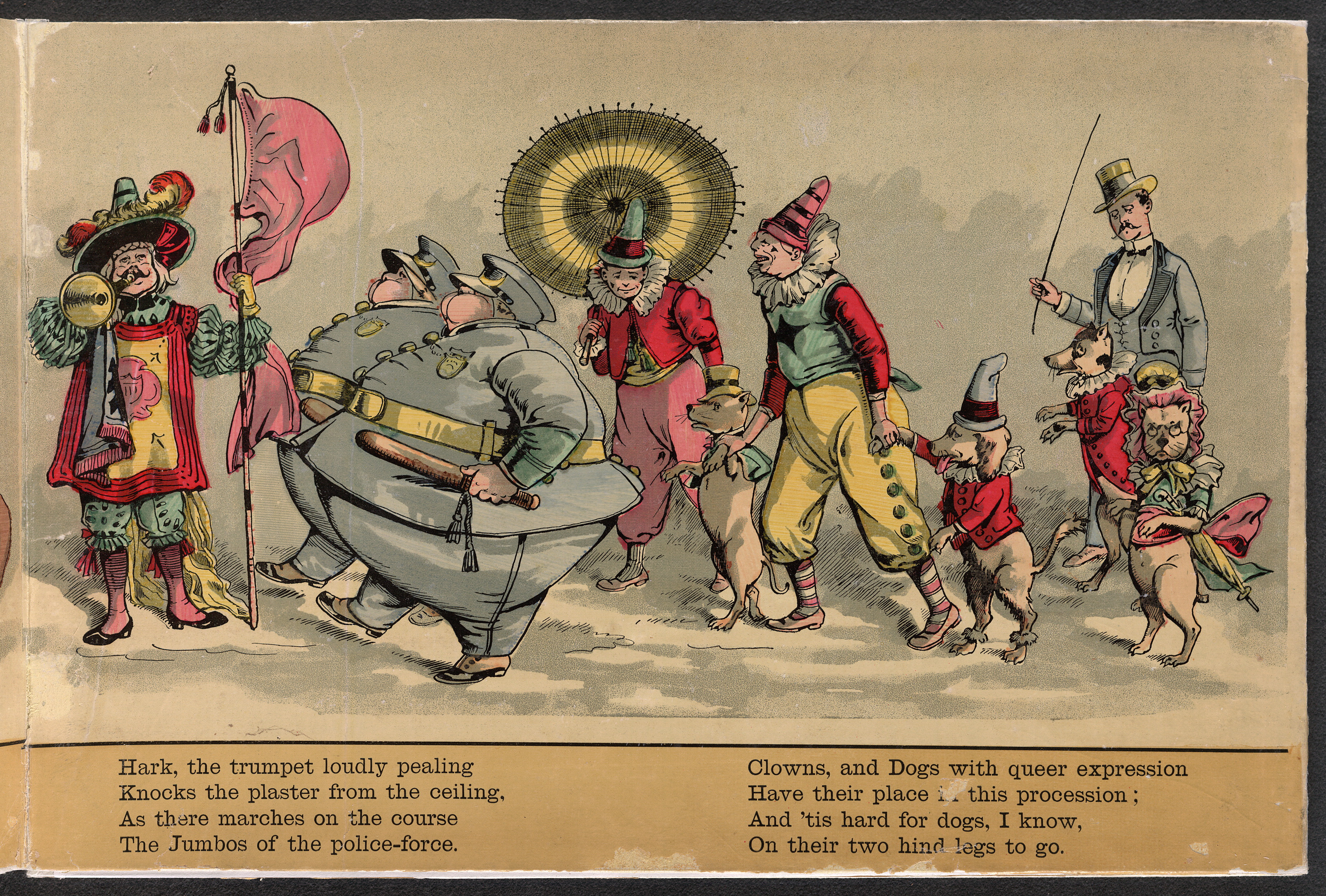 A lyrical parade of colorful circus characters.