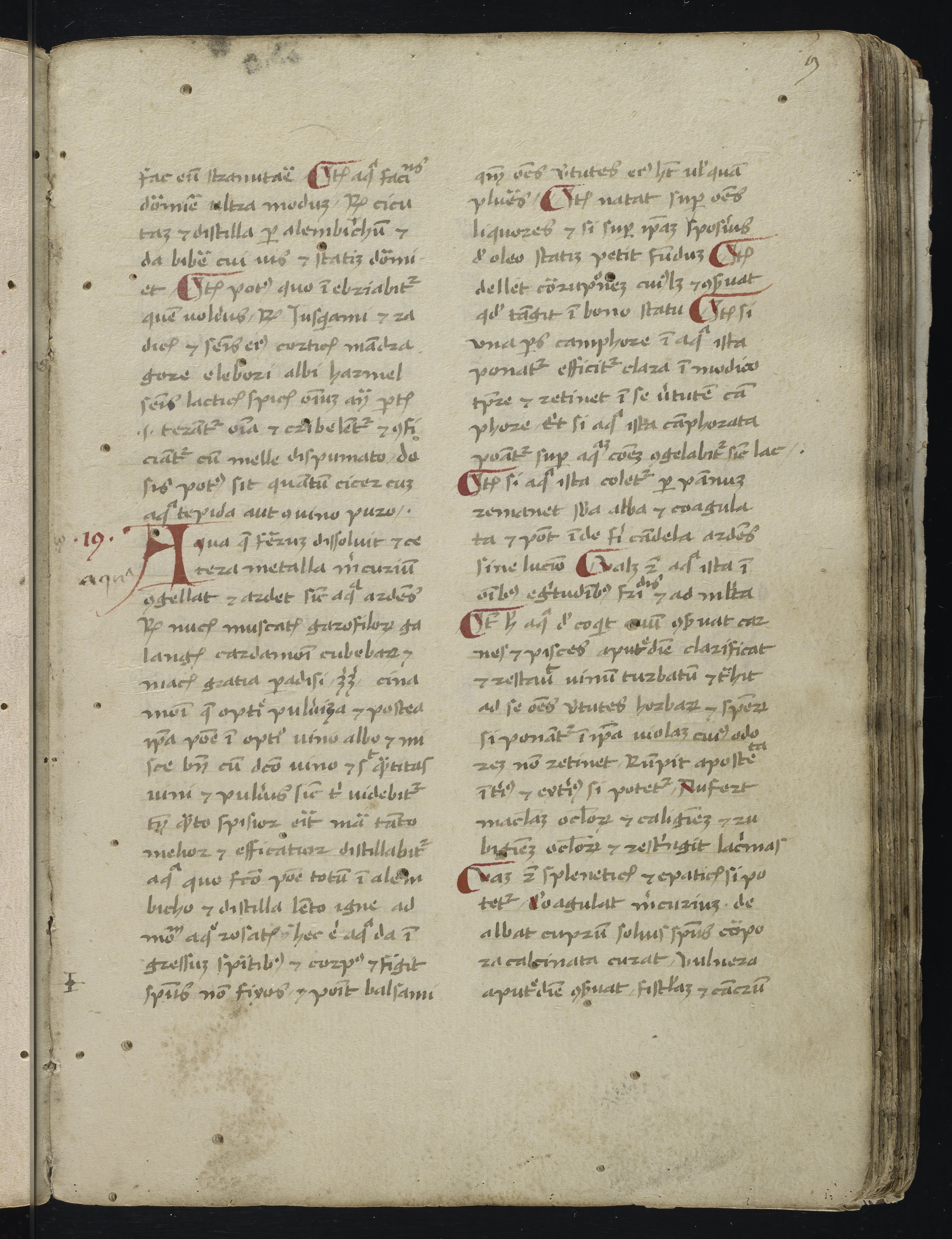 PublicThis manuscript is a diverse and well-organized recipe collection with more than 520 different recipes on topics ranging from alchemy and medicine to solutions for simple household problems such as fleas. A direct ancestor to sixteenth-century Books of Secrets, the manuscript includes an extensive alphabetical subject index for easy reference and consultation to the topics contained therein. The numbered sections vary greatly in length; in some cases a number represents a short, individual recipe, but in many others, a numbered section includes numerous separate recipes related to the same subject. The contents of the manuscript are varied, but include fairly extensive sections devoted to alchemical recipes. Other topics represented include medicine, such as treating diseases of the eye and bloodletting; recipes of a domestic, household nature, including various recipes for inks, how to erase things from parchment, and how to get rid of vermin; cosmetic recipes related to caring for the hair and face; agricultural recipes, including a lengthy section of wine; and recipes for treating disease in animals.